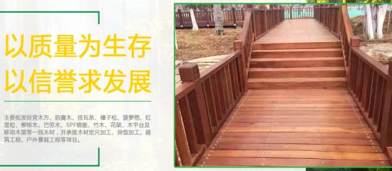 业 务:生产批发各种规格北京防腐木、北京炭化木、桑拿板、墙板材料,承接北京防腐木栈道、防腐木地板、防腐木别墅、防腐木木屋、防腐木凉亭、防腐木亭子、炭化木古建亭子、北京防腐木花架、防腐木廊架、防腐木长廊、防腐木花箱、防腐木木桥、北京防腐木围栏、防腐木栏杆、防腐木护栏、防腐木楼梯、防腐木栅栏、防腐木宣传栏、防腐木桌椅、防腐木阳光房、防腐木吊顶、防腐木阳台等防腐木炭化木景观工程。